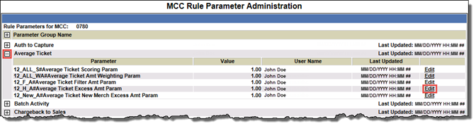 Note: An MCC marked with an asterisk (*) indicates it already has MCC level rule parameter overrides applied.
