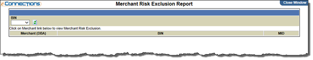 The report page refreshes to list the merchants that have risk parameter exclusions applied for the BIN you selected.