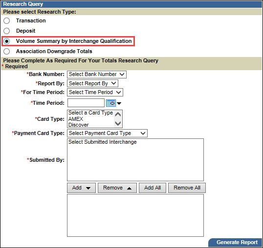 A volume summary by interchange qualification query can provide a summary of qualification information at various levels for specific time frames.