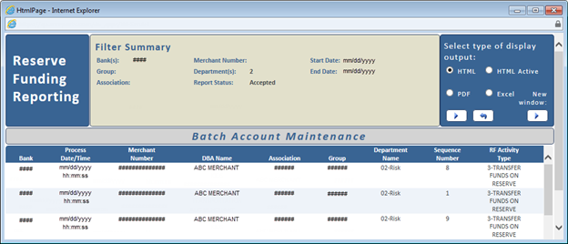 This report is only available if you use the Reserve Funding Batch File process, which enables you to submit new records or updates for Reserve Funding merchants, using standard file transfer processes.
