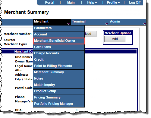 In the Merchant Quick Links panel, click Merchant Beneficial Owner.